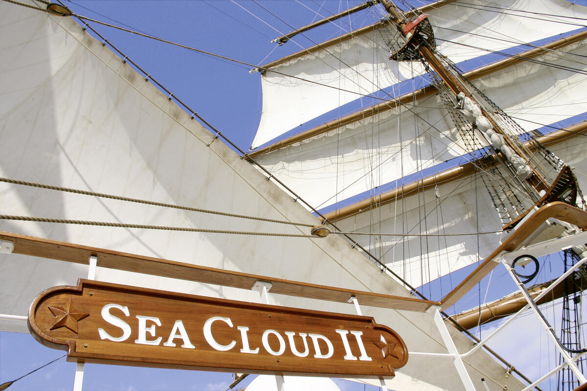 "Als eleganter Rahsegler ist die 2001 gebaute SEA CLOUD II klar als jüngere Schwester der legendären SEA CLOUD zu erkennen. Trotz aller maritimen Familienähnlichkeit hat sie eine ganz eigene, großzügige Persönlichkeit – und verwöhnt Sie als Gast mit modernstem Reisekomfort.